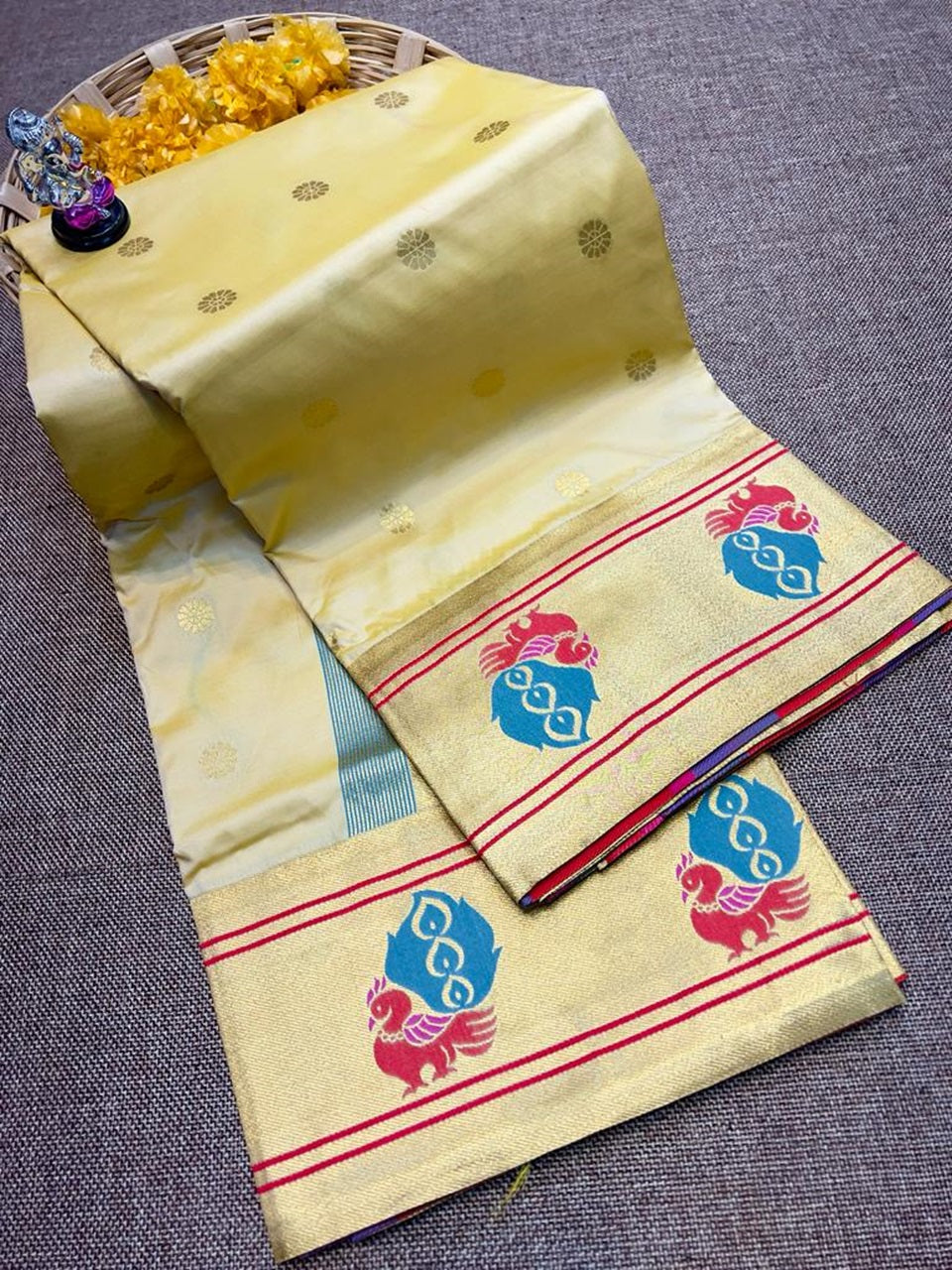 Cloth Details = Pure Katan SilkBlouse Piece= Self with Beautiful Border Both SideButti = All Over Zari...