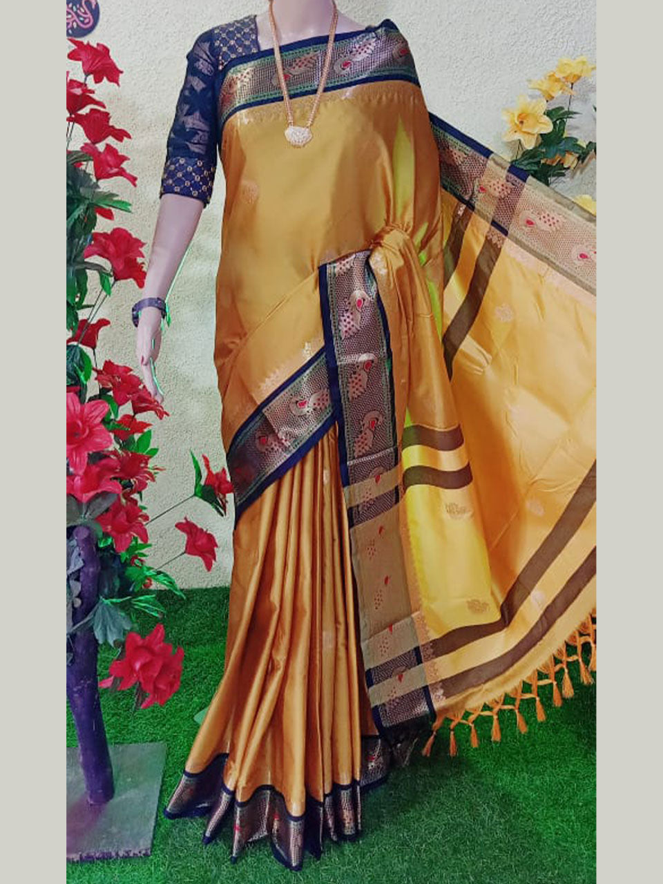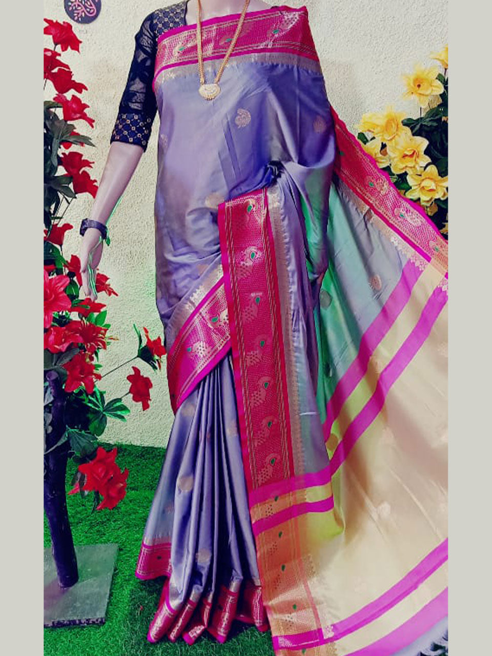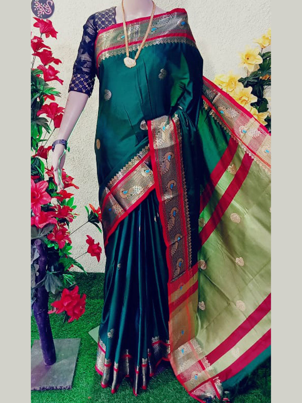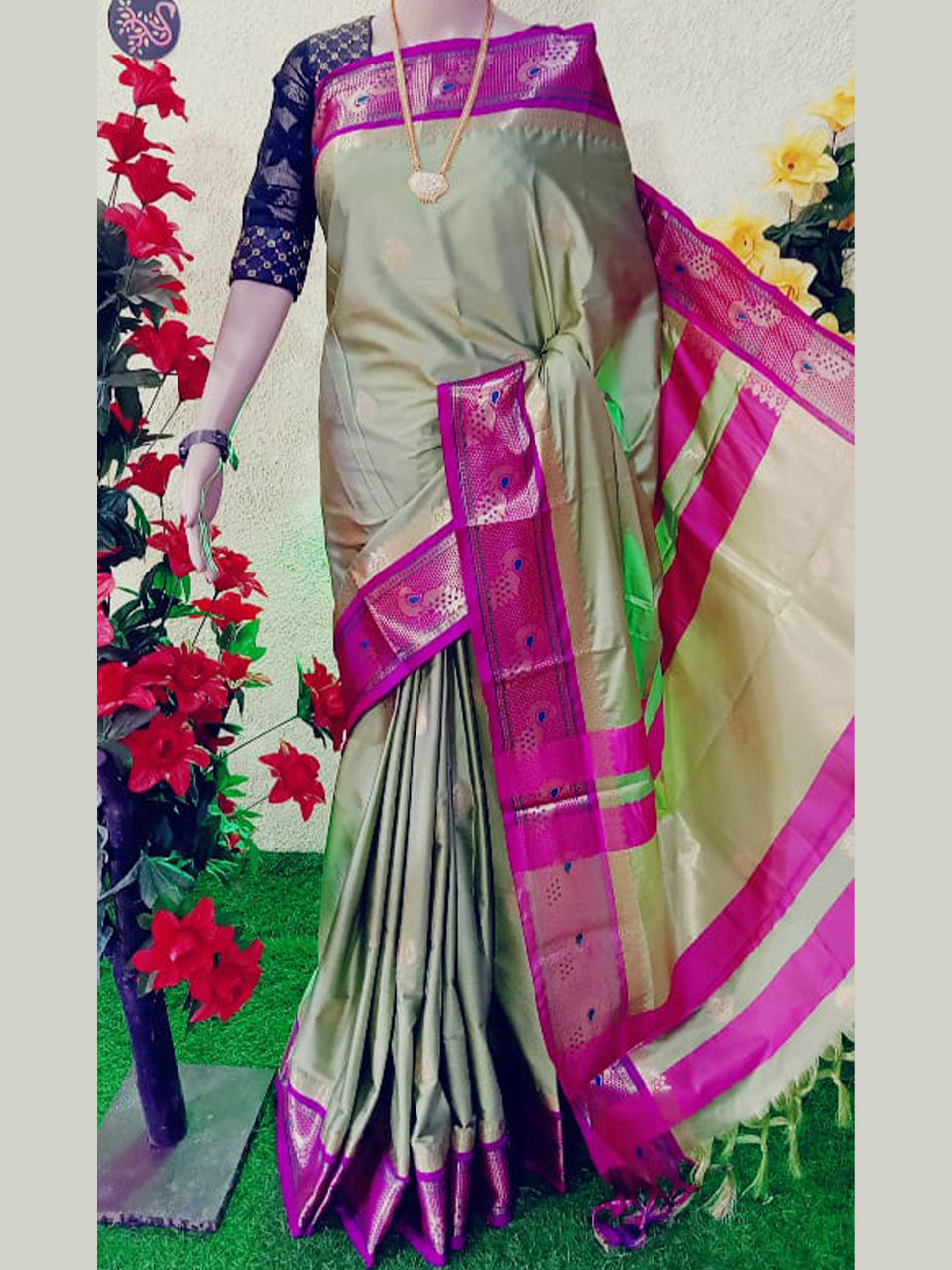 Peacock border paithani Soft sico silk saree with contrast blouse