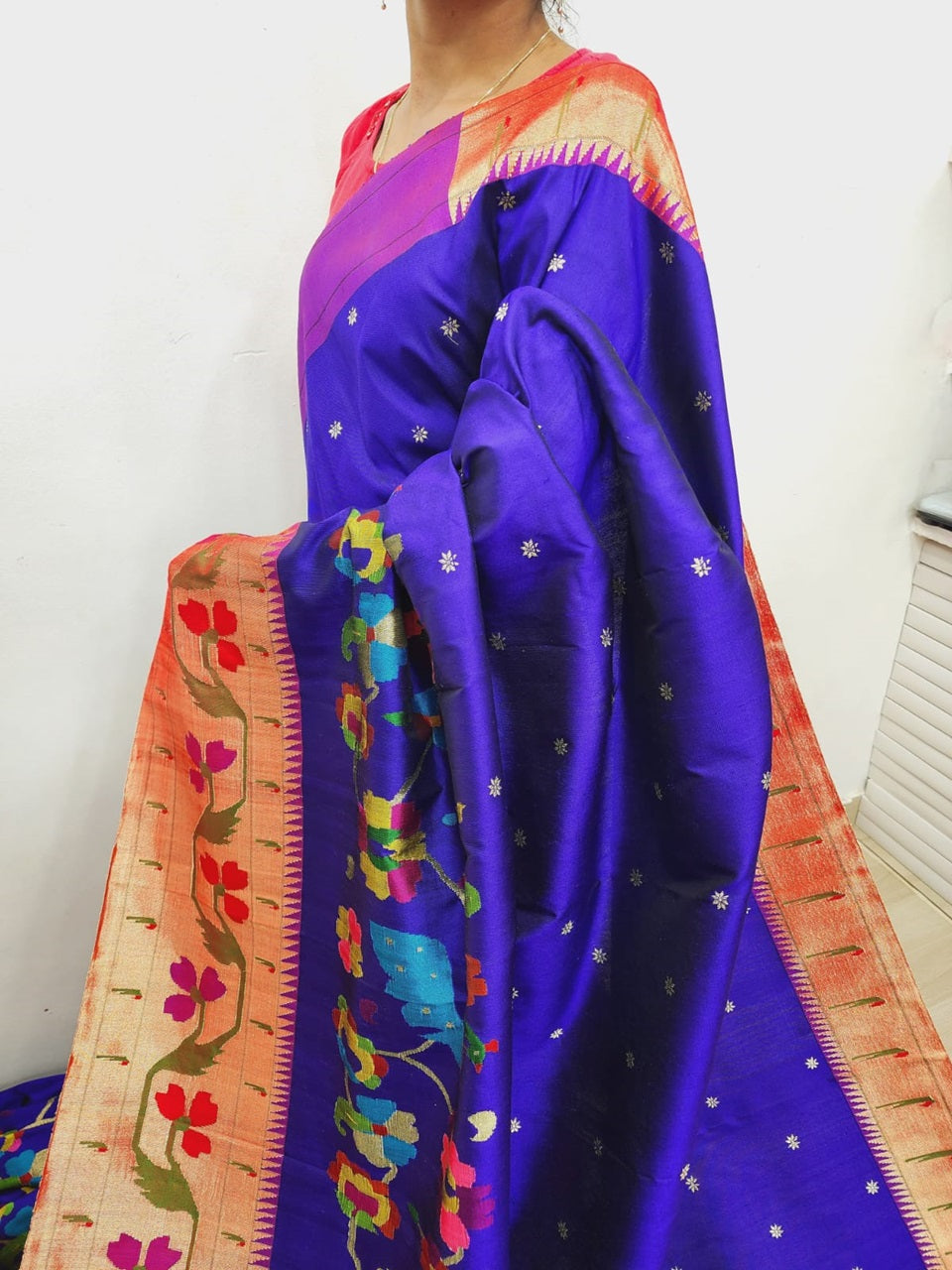 Pure Silk Handloom Half All Over Design Brocade Paithani Saree