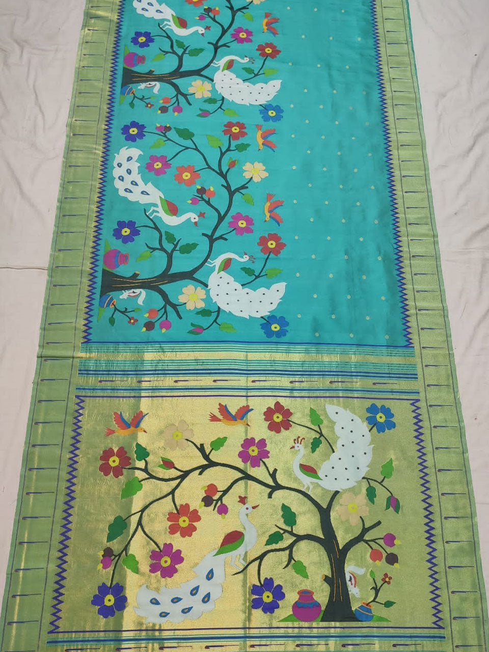 Pure silk handloom peckok parrot design half all over brocade paithani saree
