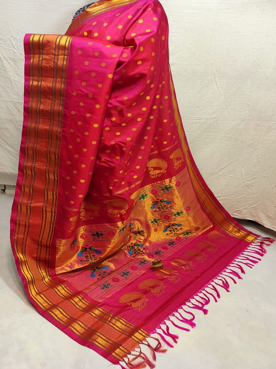 Shree Renuka Mata PrasannaSwamini Maharani Kalanjali Paithani.Handmade SareePure Silk MaterialMaharani PalluAll Over ButtaSelf Blouse.Soft WearSilk mark sertifiedFree...